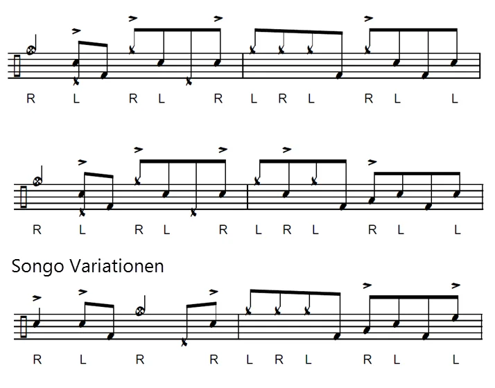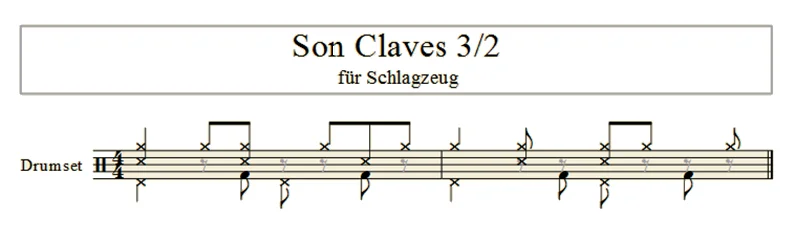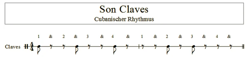 Auf Schlagzeug oder in der Percussions Gruppe gespielt, kommen da noch diverse weitere Noten dazu, aber der Akzent auf 1, 2&, 4 in erstenTakt und 2,3 in zweiten Takt bleibt erhalten und gibt dem Son seinen speziellen Charakter.