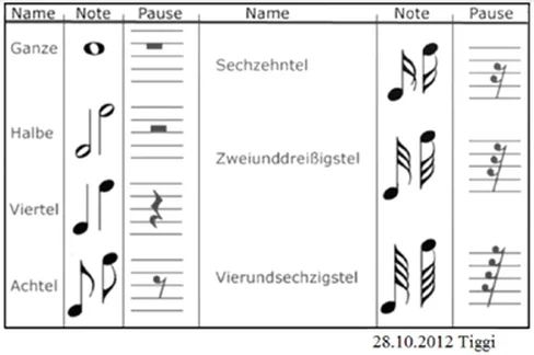 • Rhythmus ist das durch die Folge unterschiedlicher Notenwerte entstehende Akzentmuster über dem Grundschlag.